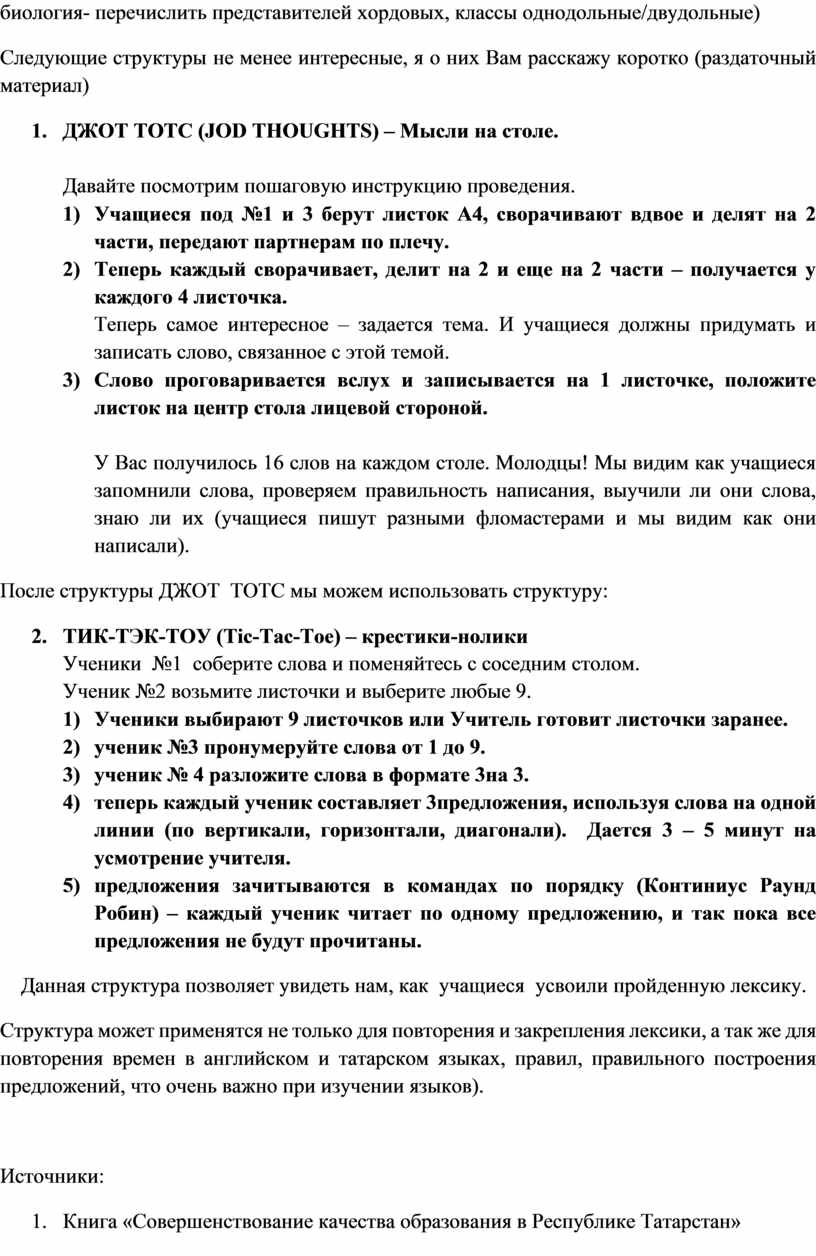 Структура может применятся не только для повторения и закрепления лексики, а так же для повторения времен в английском и татарском языках, правил, правильного построения предложений, что очень важно при изучении языков).