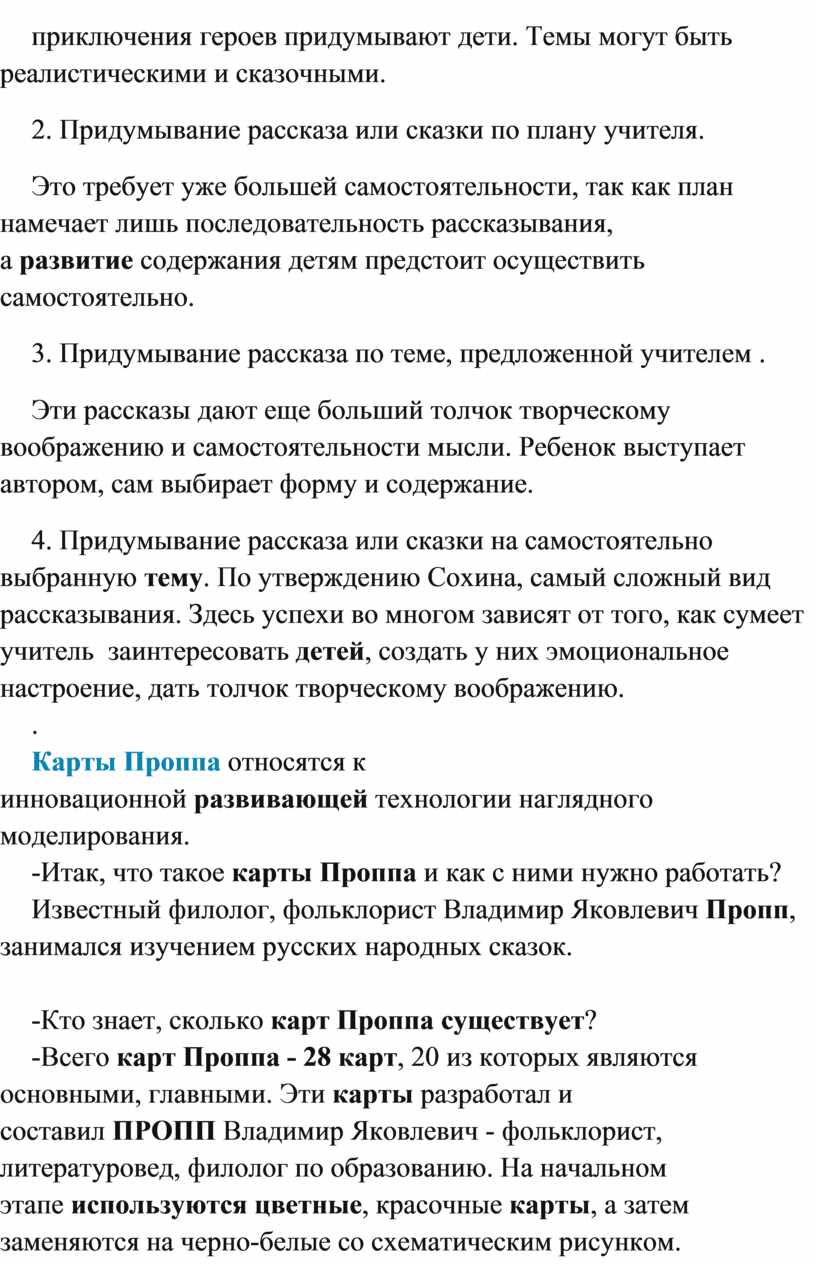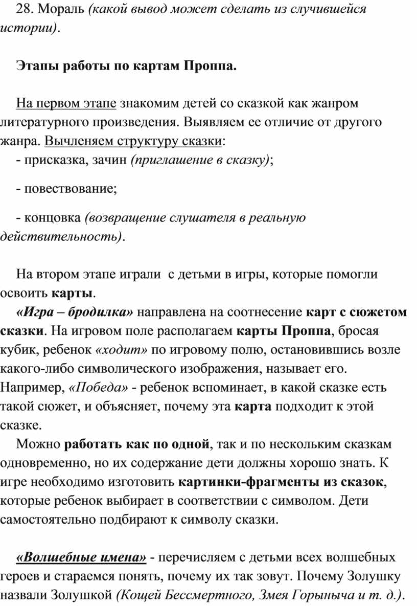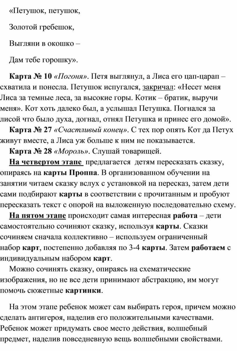 Этапы работы по картам Проппа.