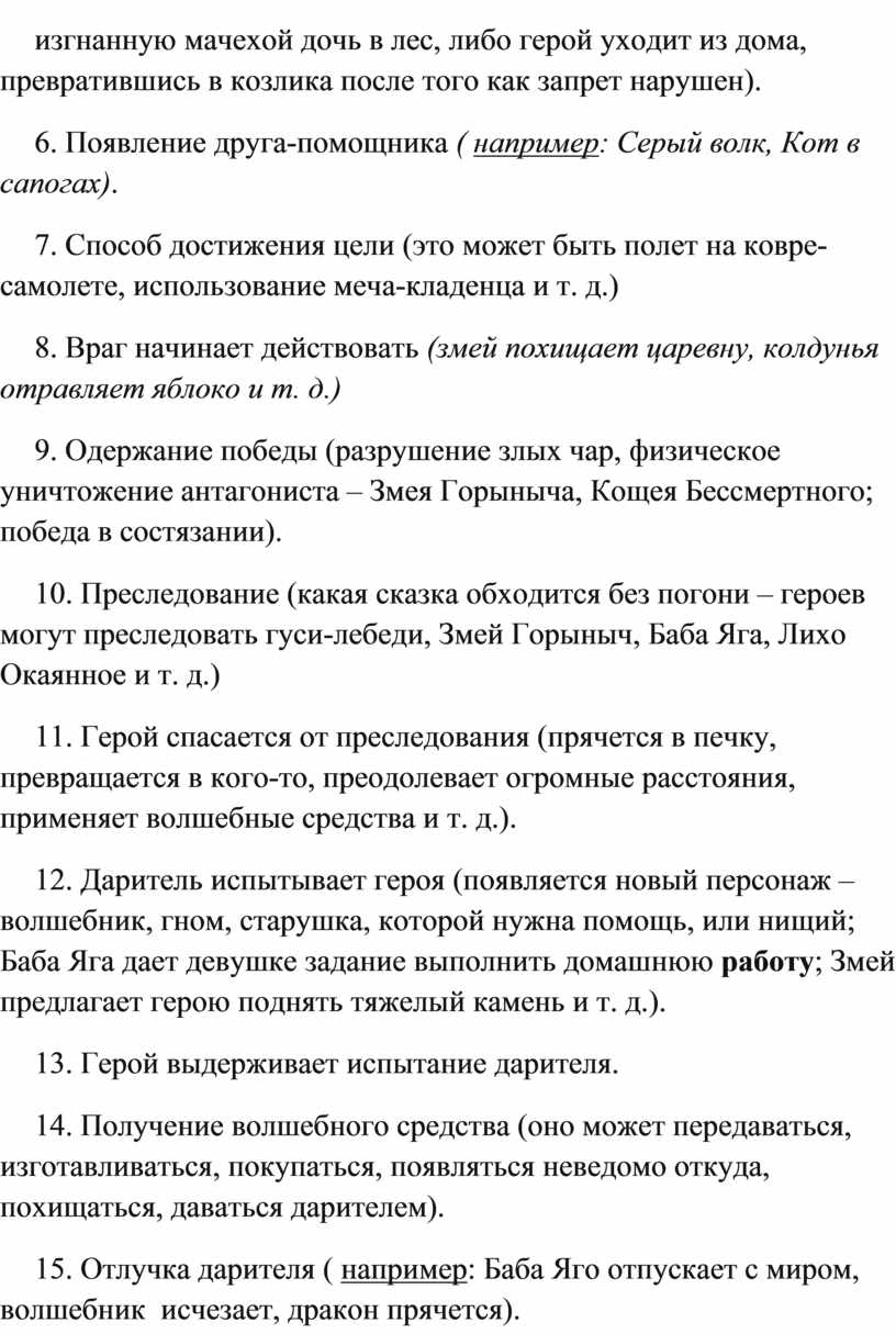 12. Даритель испытывает героя (появляется новый персонаж – волшебник, гном, старушка, которой нужна помощь, или нищий; Баба Яга дает девушке задание выполнить домашнюю работу; Змей предлагает герою поднять тяжелый камень и т. д.).