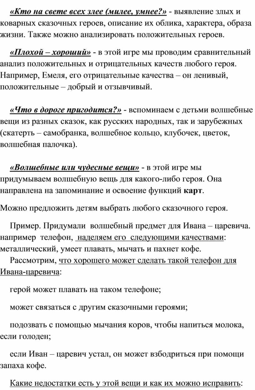 «Волшебные или чудесные вещи» - в этой игре мы придумываем волшебную вещь для какого-либо героя. Она направлена на запоминание и освоение функций карт.