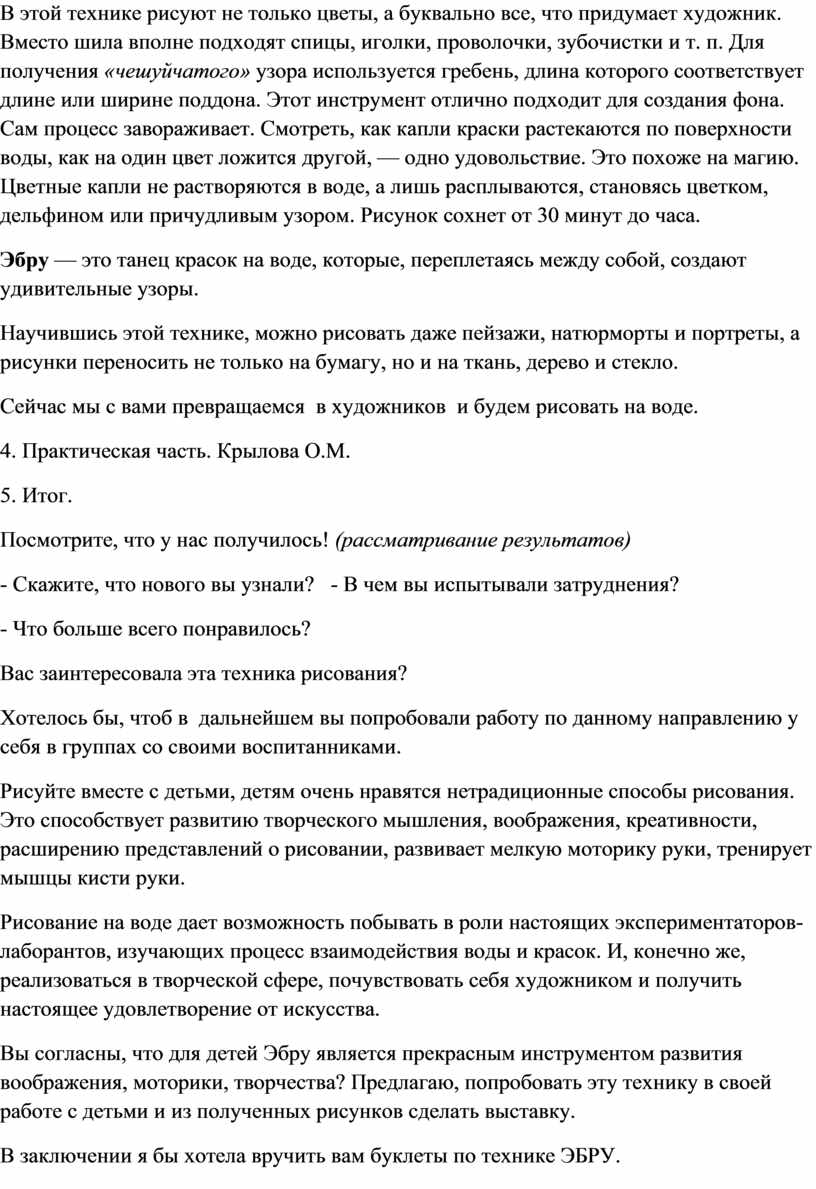 В заключении я бы хотела вручить вам буклеты по технике ЭБРУ.