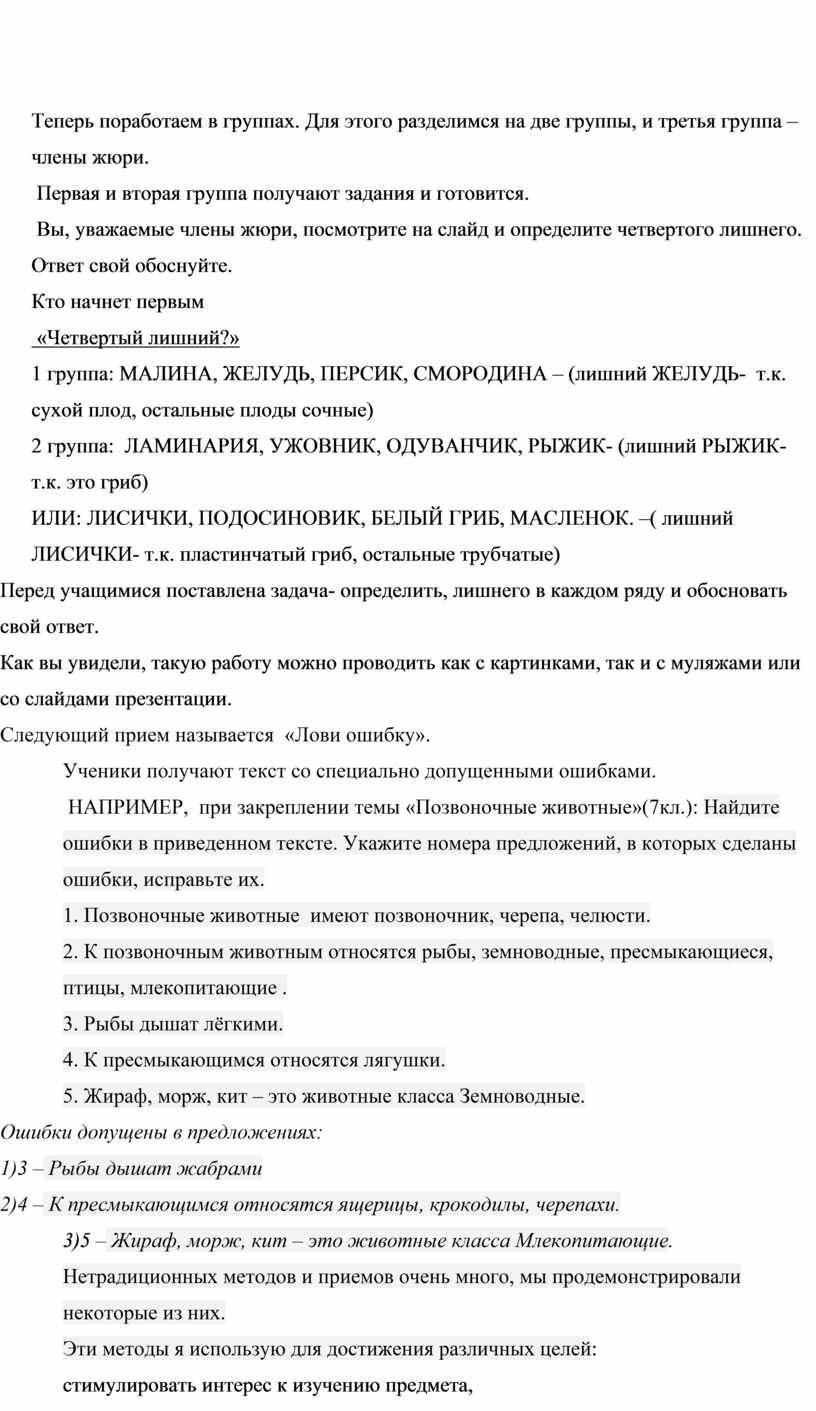 Цель моего мастер-класса поделиться опытом применения нетрадиционных приемов и методов на своих уроках биологии.