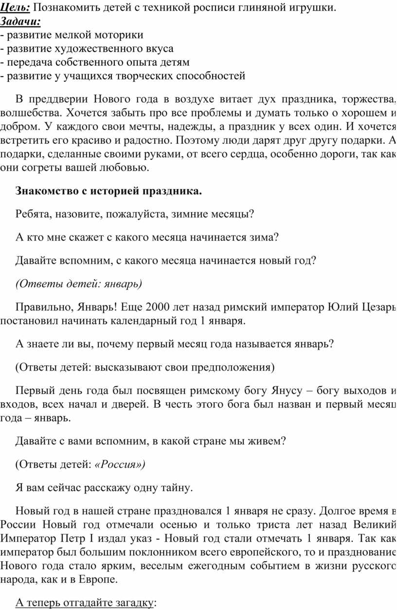 Цель: Познакомить детей с техникой росписи глиняной игрушки.