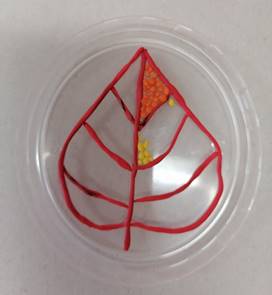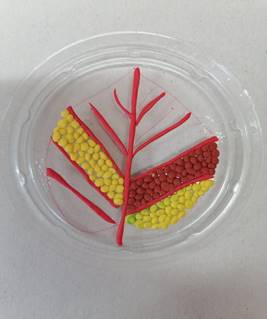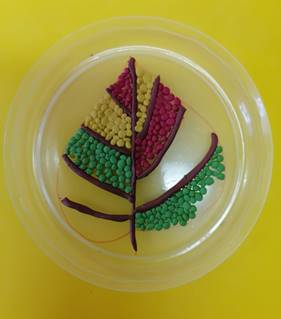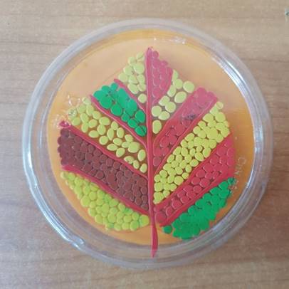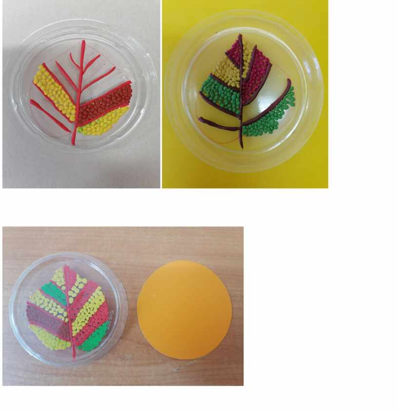 – Ребята, для того, чтобы получился красивый листик, нам нужно разноцветные кусочки пластилина наложить друг на друга и «вливать» цвет в цвет.