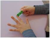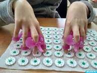 11. Пропевание гласных звуков при нажатии пальчиками на иголки иппликатора (А-О-У-Ы-Э).