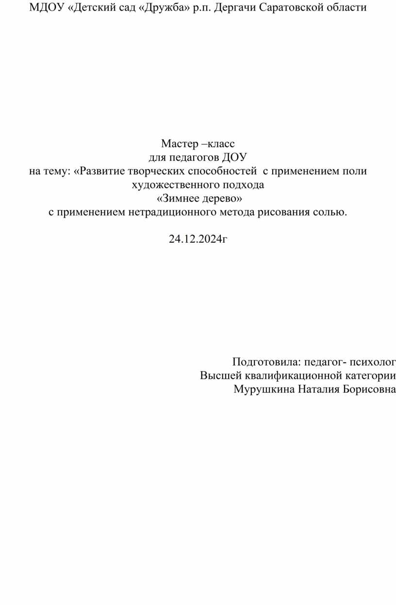 МДОУ «Детский сад «Дружба» р.п. Дергачи Саратовской области