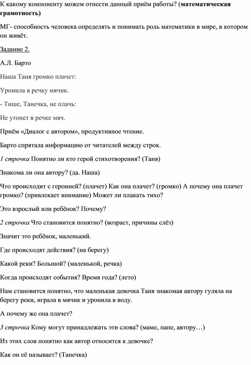 К какому компоненту можем отнести данный приём работы? (читательская грамотность)