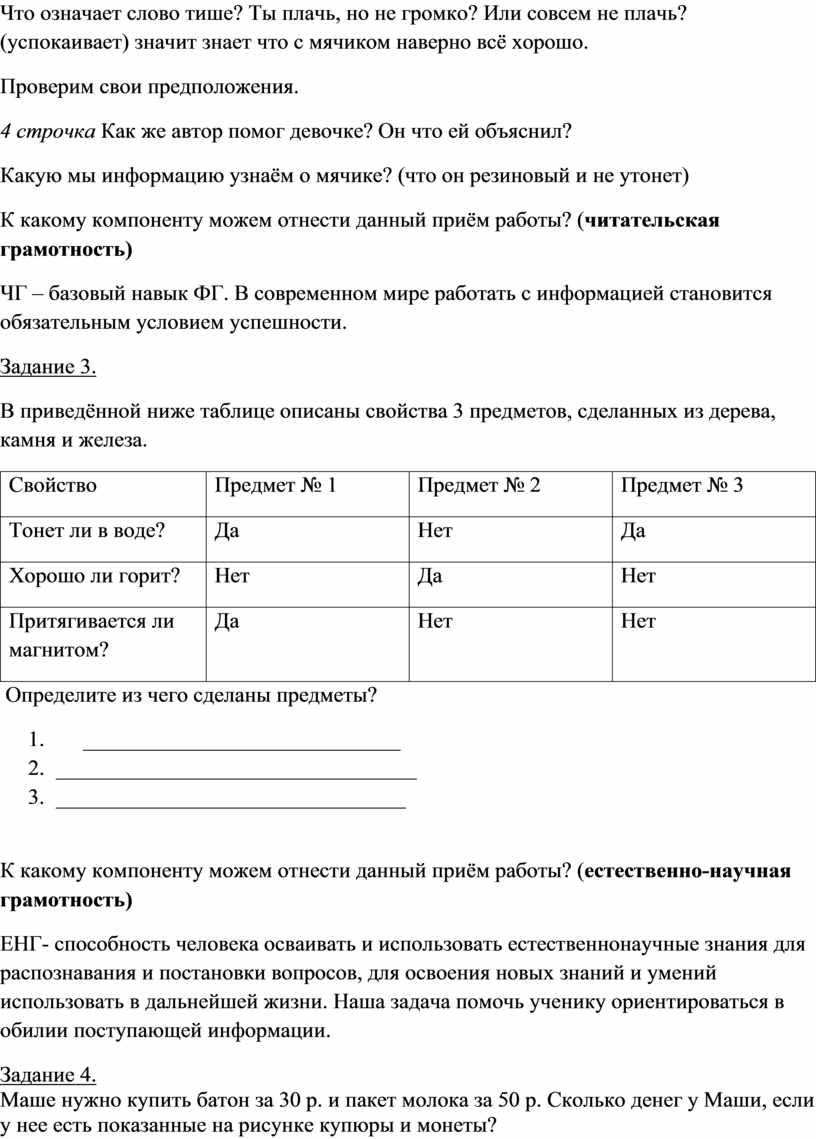 К какому компоненту можем отнести данный приём работы? (естественно-научная грамотность)