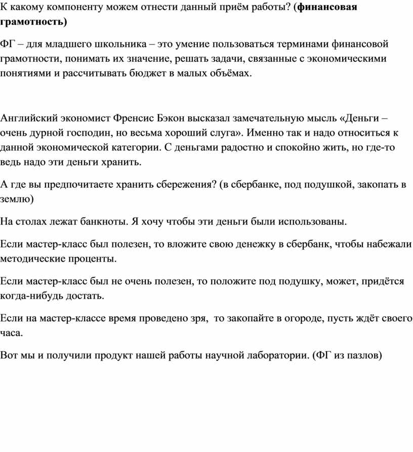 К какому компоненту можем отнести данный приём работы? (финансовая грамотность)