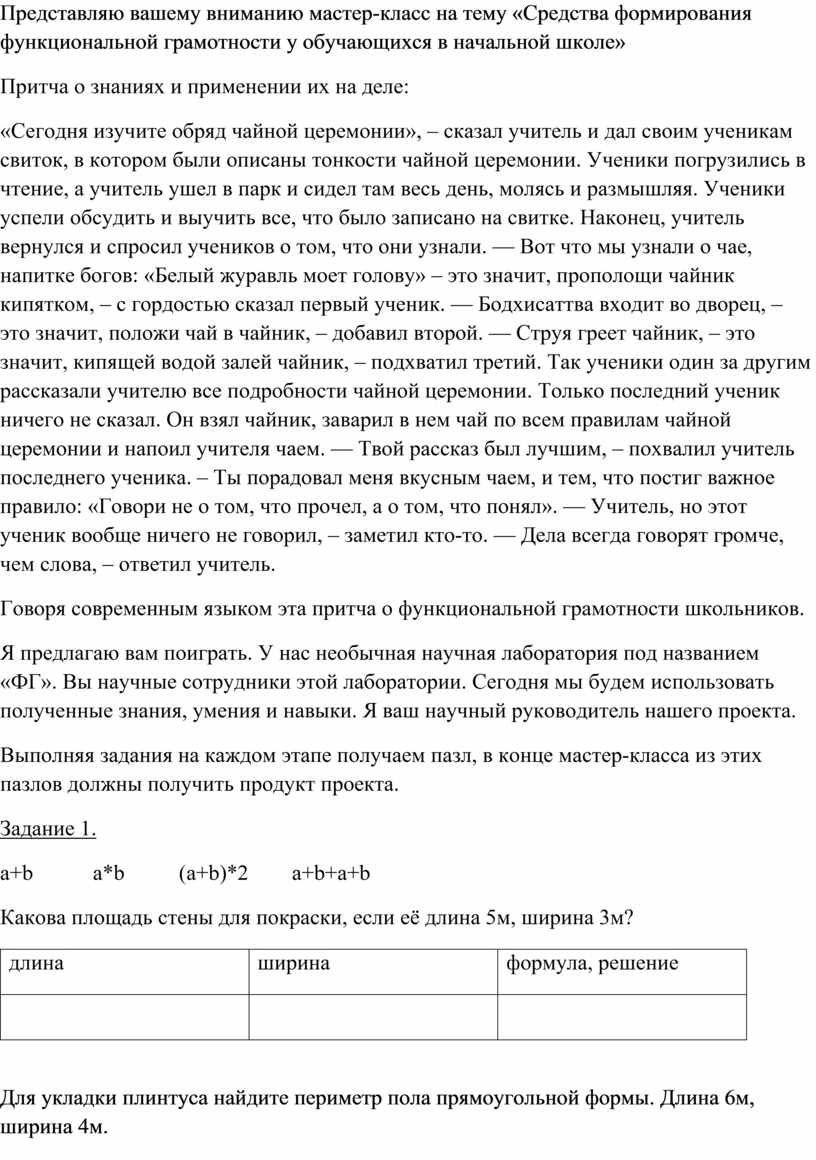 Говоря современным языком эта притча о функциональной грамотности школьников.