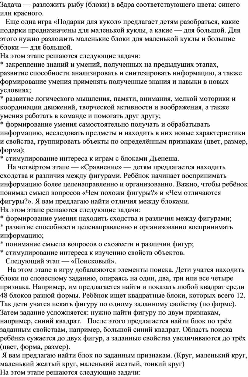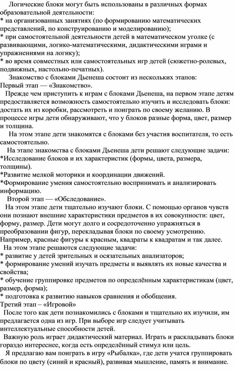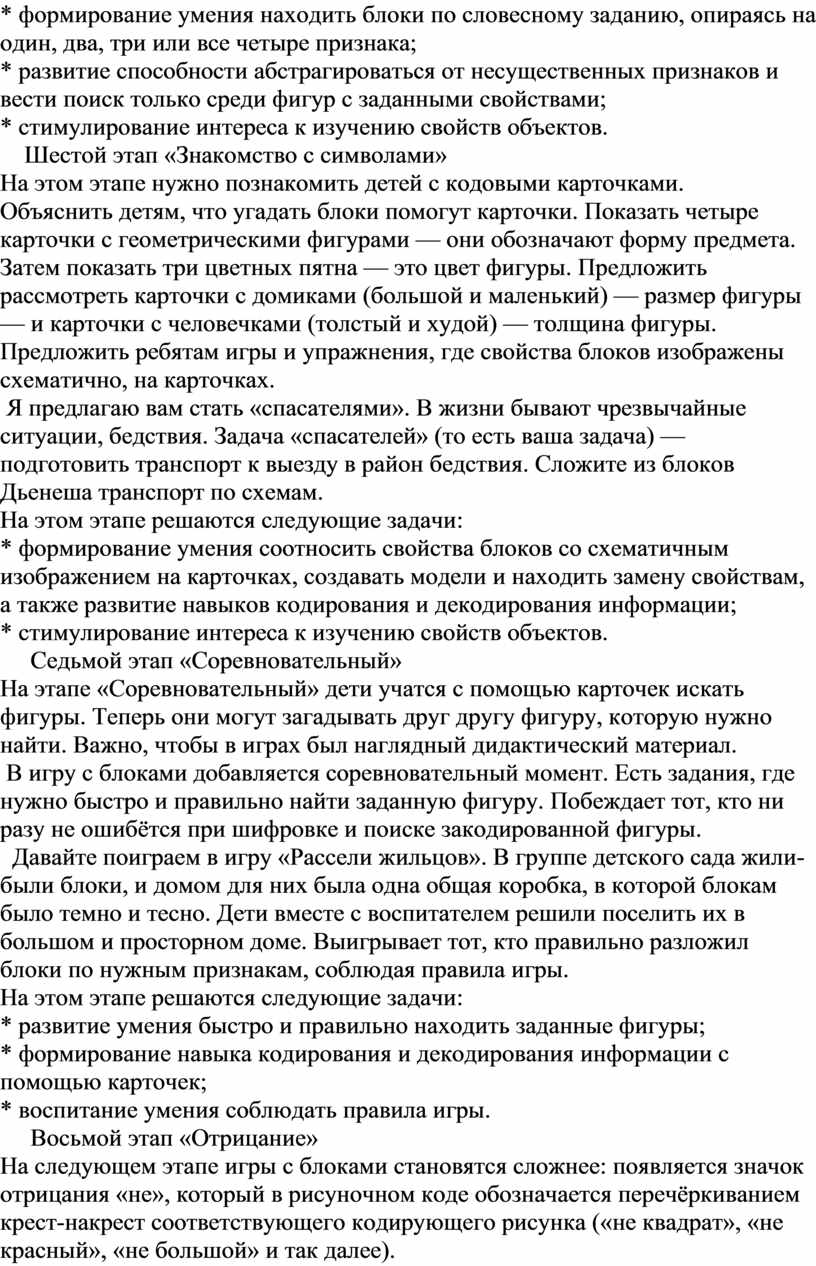 Необязательно строго следовать одному этапу за другим. В зависимости от возраста, с которого начинается работа с блоками, а также от уровня развития детей, педагог может объединять или пропускать некоторые этапы.