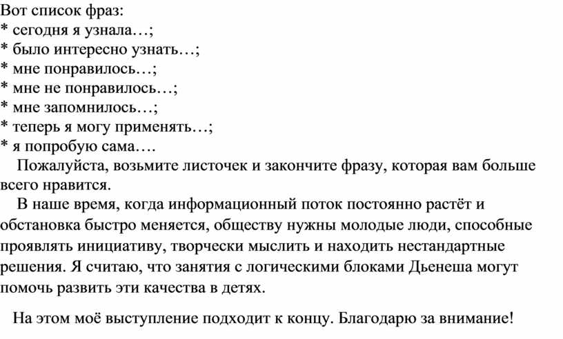 Пожалуйста, возьмите листочек и закончите фразу, которая вам больше всего нравится.