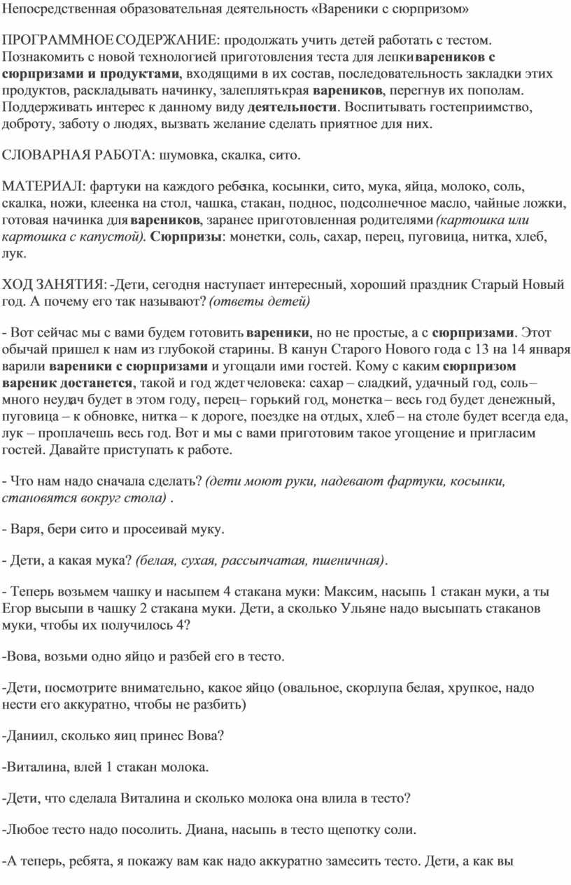 на тему: Непосредственная образовательная деятельность «Вареники с сюрпризом»