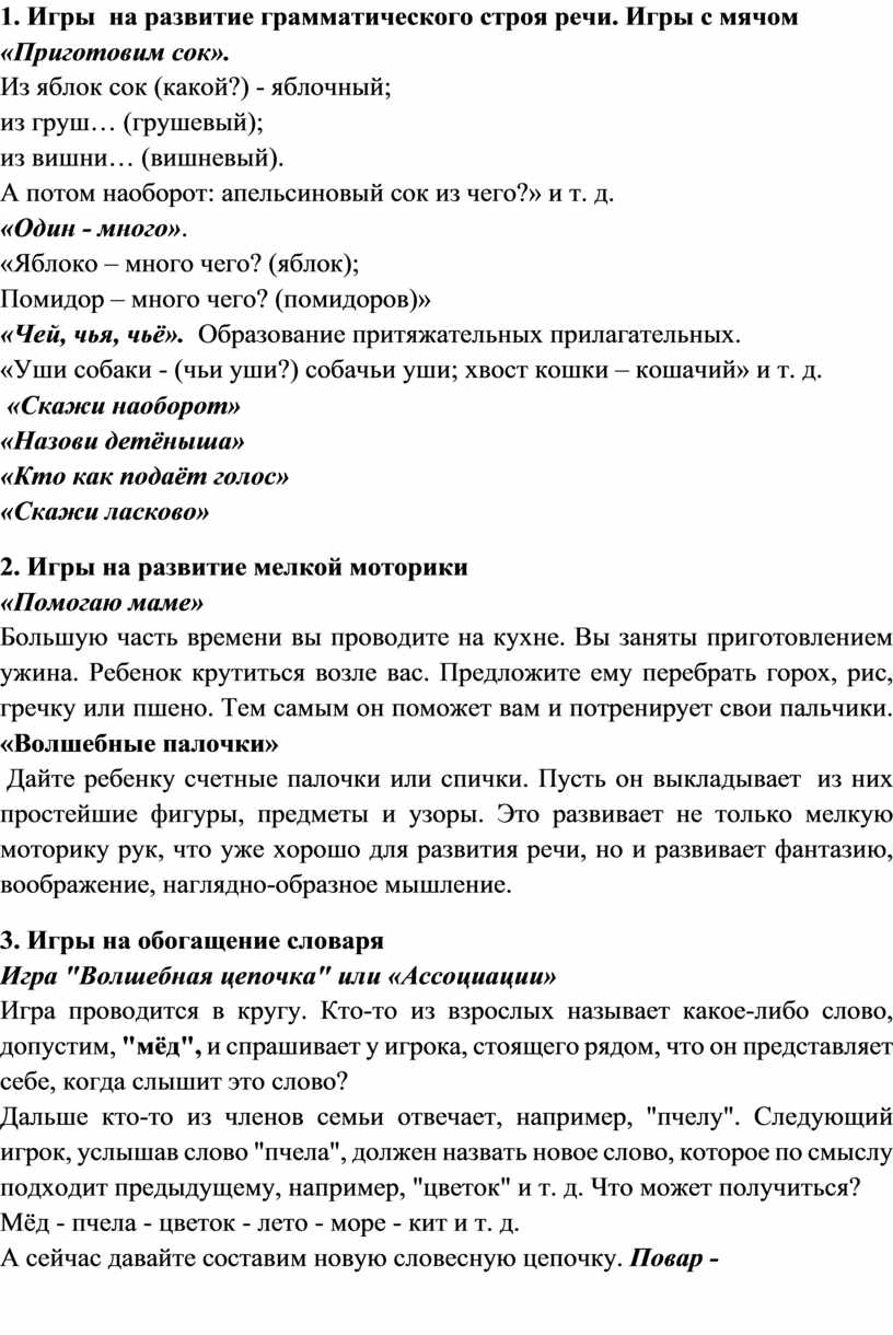 3. Вовлечь родителей в практическую деятельность по совершенствованию связной речи у детей через словесные игры.