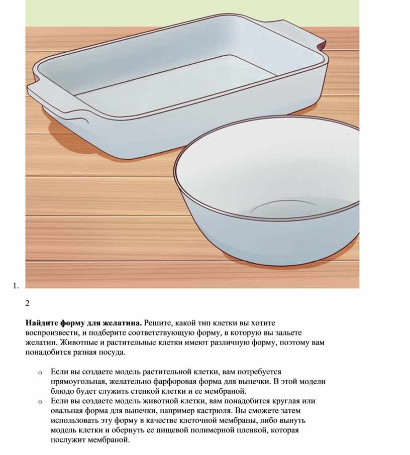 Найдите форму для желатина. Решите, какой тип клетки вы хотите воспроизвести, и подберите соответствующую форму, в которую вы зальете желатин. Животные и растительные клетки имеют различную форму, поэтому вам понадобится разная посуда.