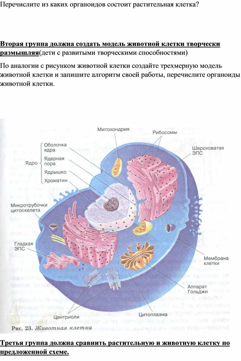 По аналогии с рисунком животной клетки создайте трехмерную модель животной клетки и запишите алгоритм своей работы, перечислите органоиды животной клетки.