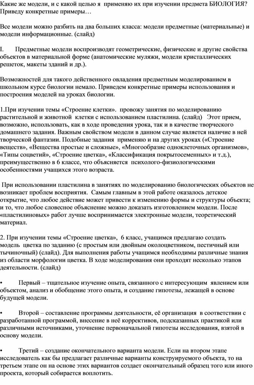 Какие же модели, и с какой целью я применяю их при изучении предмета БИОЛОГИЯ? Приведу конкретные примеры…