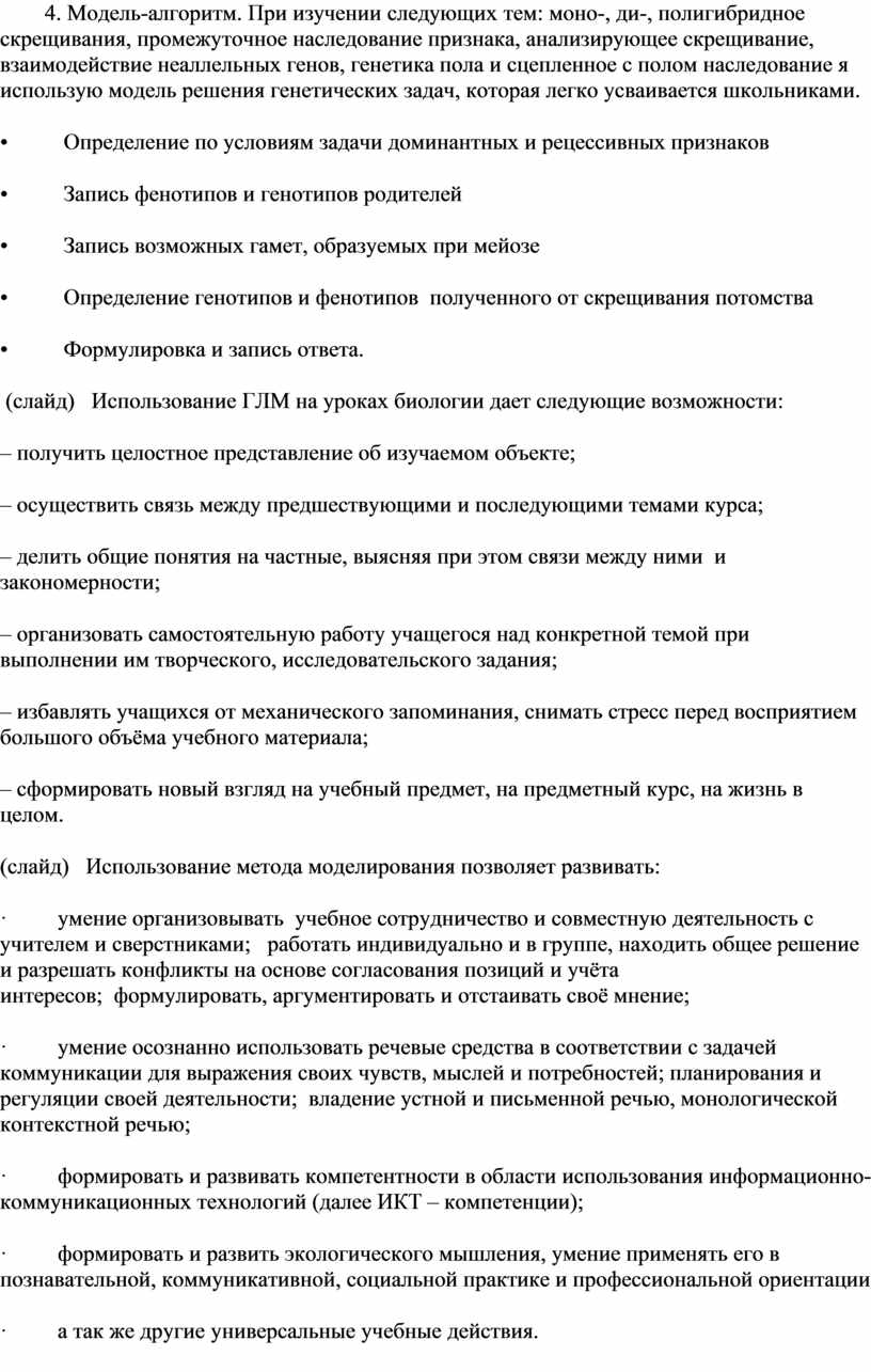 (слайд) Использование ГЛМ на уроках биологии дает следующие возможности: