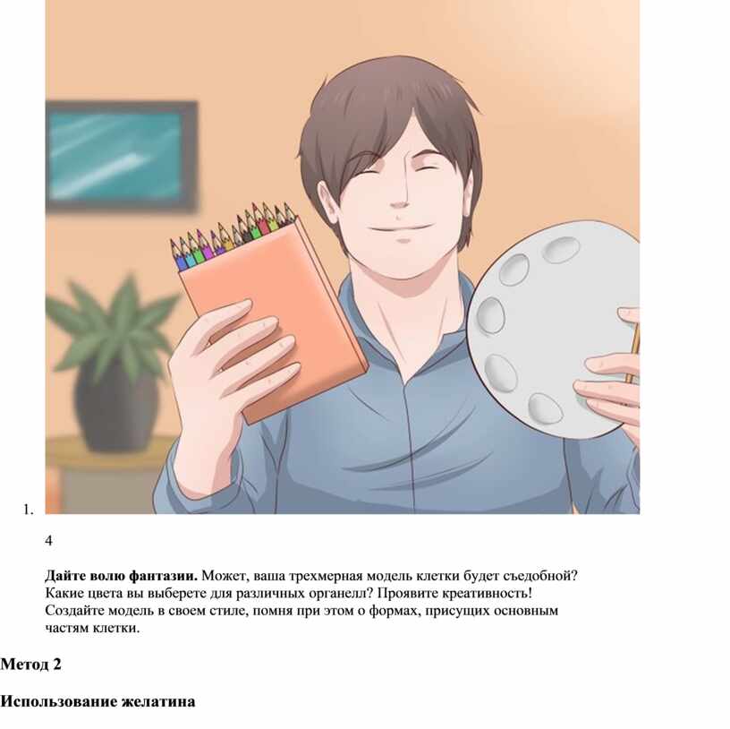 Дайте волю фантазии. Может, ваша трехмерная модель клетки будет съедобной? Какие цвета вы выберете для различных органелл? Проявите креативность! Создайте модель в своем стиле, помня при этом о формах, присущих основным частям клетки.