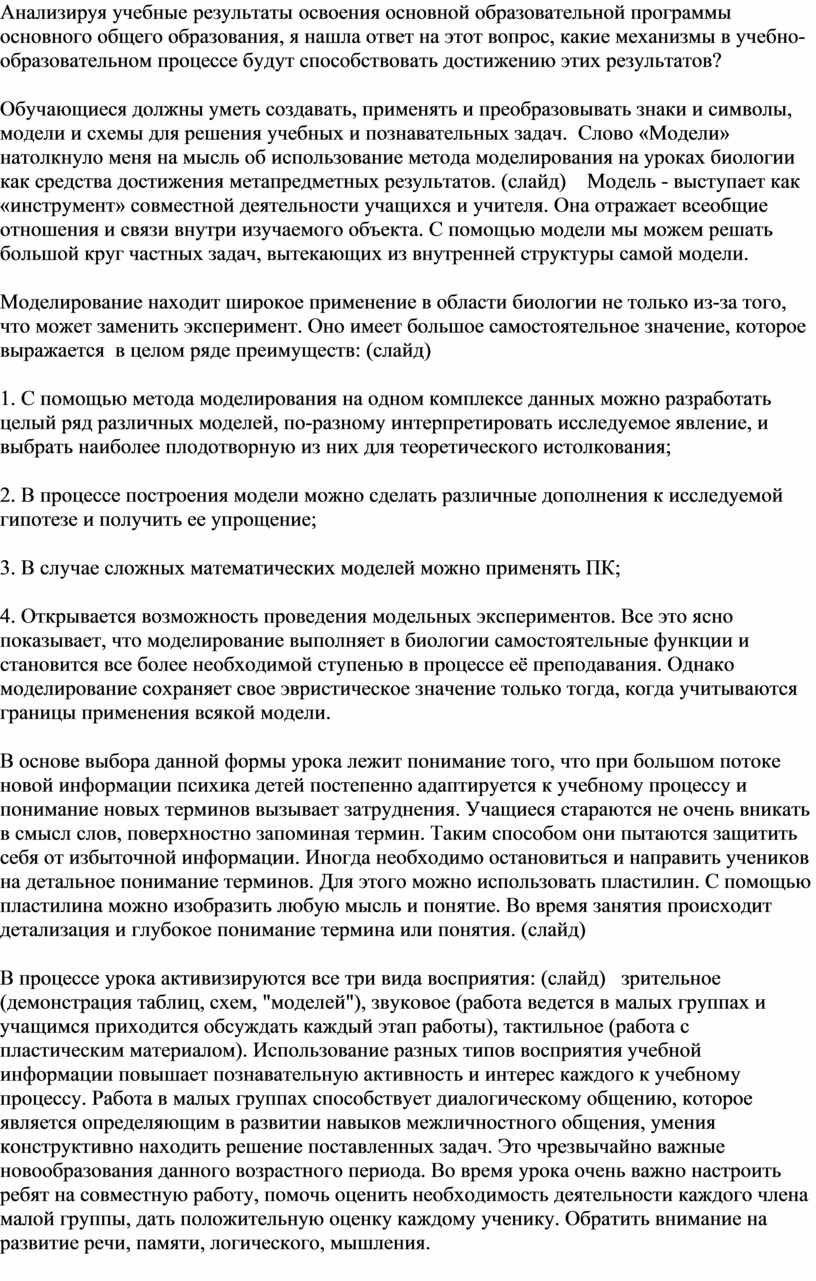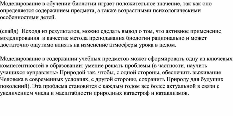 Моделирование в обучении биологии играет положительное значение, так как оно определяется содержанием предмета, а также возрастными психологическими особенностями детей.