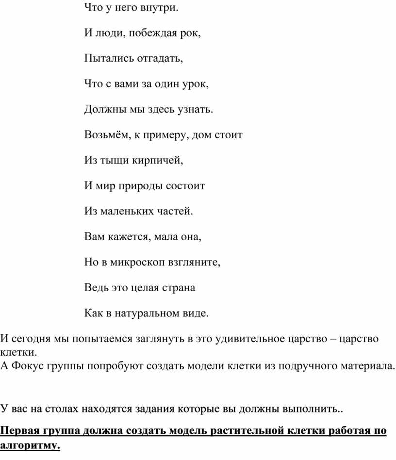 Первая группа должна создать модель растительной клетки работая по алгоритму.