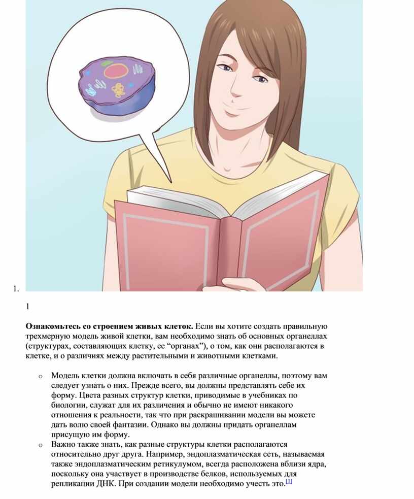 Ознакомьтесь со строением живых клеток. Если вы хотите создать правильную трехмерную модель живой клетки, вам необходимо знать об основных органеллах (структурах, составляющих клетку, ее “органах”), о том, как они располагаются в клетке, и о различиях между растительными и животными клетками.