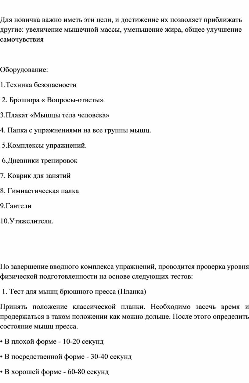Для новичка важно иметь эти цели, и достижение их позволяет приближать другие: увеличение мышечной массы, уменьшение жира, общее улучшение самочувствия