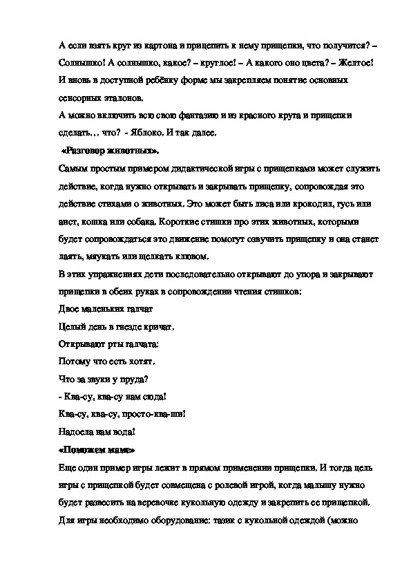 игры с прищепкой будет совмещена с ролевой игрой, когда малышу нужно