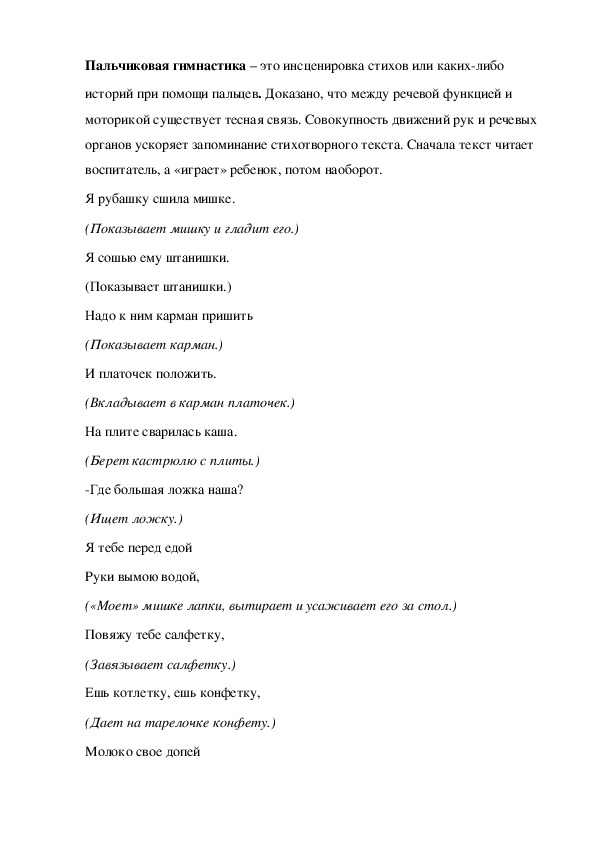 фантазии и воображения.Пальчиковая гимнастика – это инсценировка стихов или какихлибо