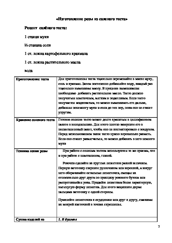 Из соленого теста делаем розочки. (Технологическая карта №2)