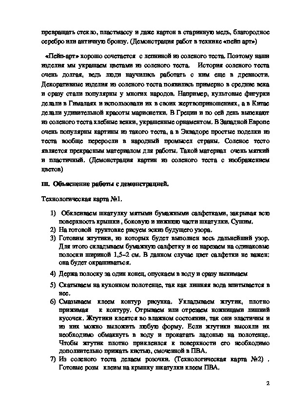II. Вступительное слово. История возникновения лепки из соленого теста и « пейп –