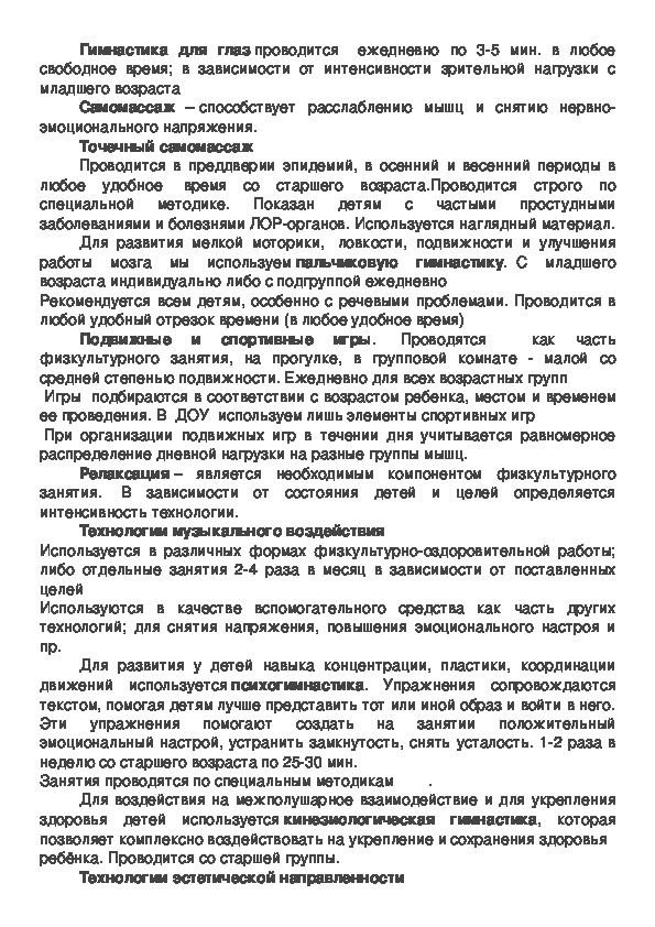 Таким образом, здоровьесберегающие технологии, используемые в работе с