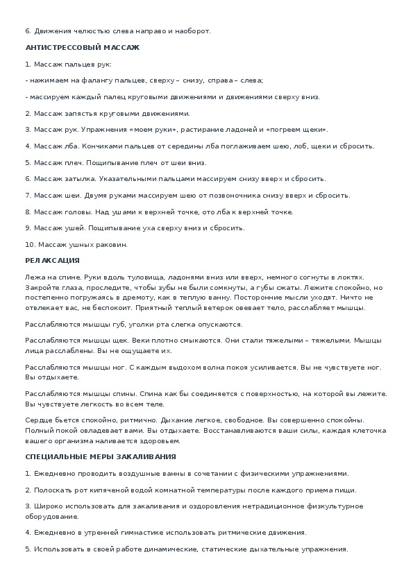 массаж, самомассаж и т.д.