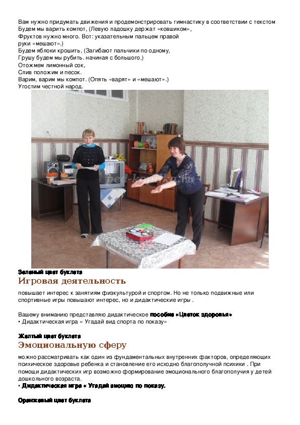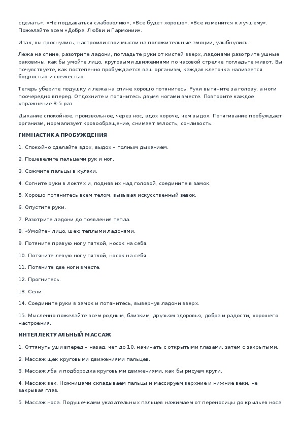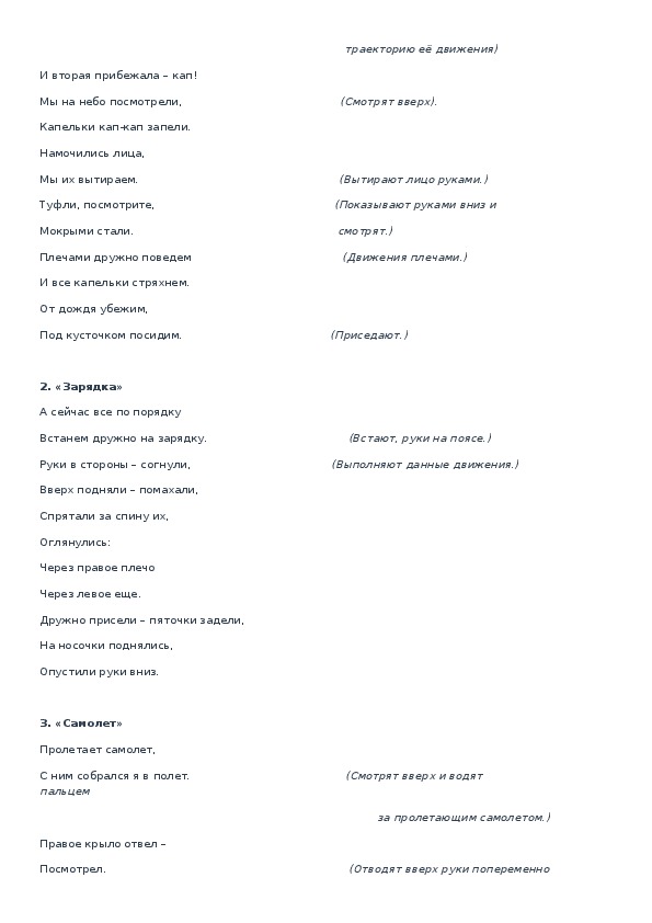 • Снимает тревожностьВам нужно придумать движения и продемонстрировать гимнастику в соответствии с текстом