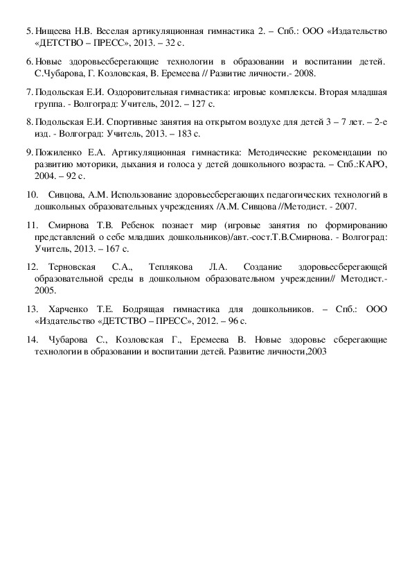 1. Алямовская, В.Г. Современные подходы к оздоровлению детей в дошкольном