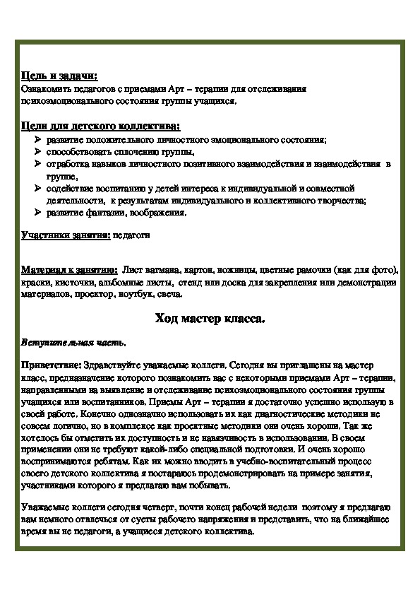 учащихся или воспитанников. Приемы Арт – терапии я достаточно успешно использую в