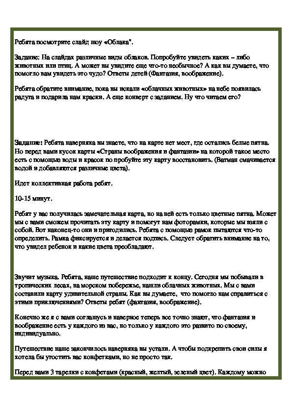 подвести ребят к тому, что это воображение или фантазия. Когда прозвучит правильный