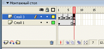 Затем вставьте ключевой кадр в 5 кадр и поменяйте цвет гирлянды. Аналогично вставьте ключевой кадр в 7 кадр и тоже поменяйте цвет гирлянды.