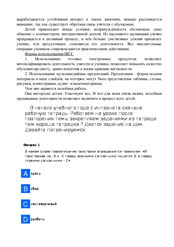 Р результат, я хочу видеть своих учеников уверенными, умело выбирающими