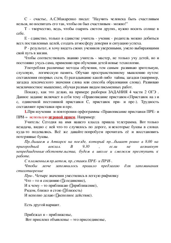 с, одиночной постоянной приставки С, приставок при и пре). Трудность