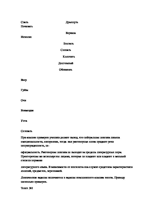 Лексические задания включаются в задания комплексного анализа текста. Приведу