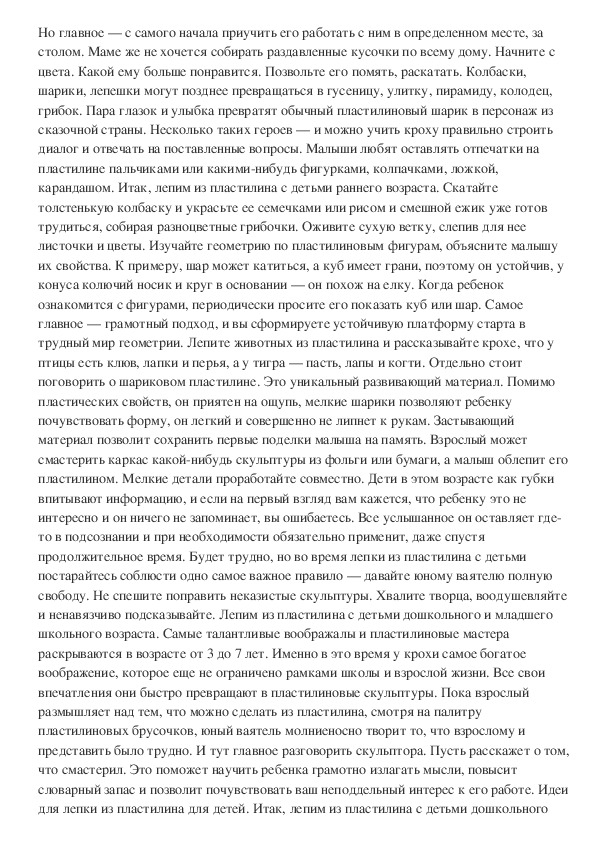 продолжительное время. Будет трудно, но во время лепки из пластилина с детьми