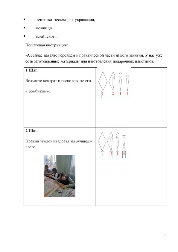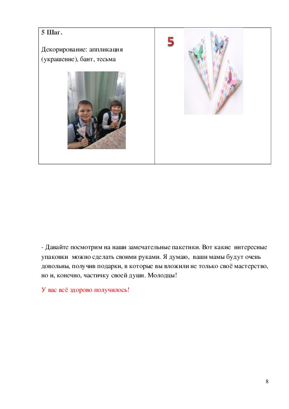 есть заготовленные материалы для изготовления подарочных пакетиков.