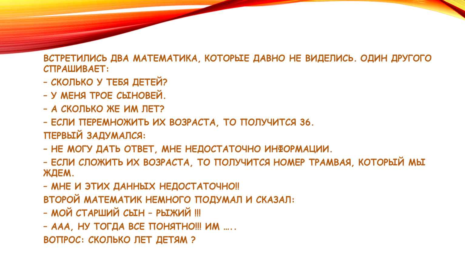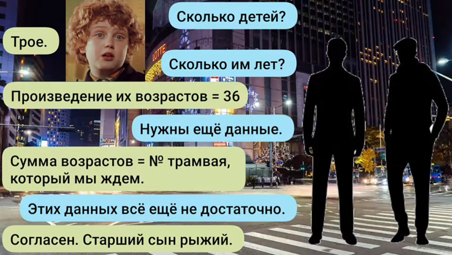 – Если сложить их возраста, то получится номер трамвая, который мы ждем.