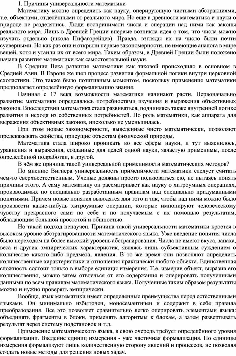 То есть следует заметить, что математика универсальна не абсолютно. При применении математических методов в различных науках наблюдается определенная специфика.