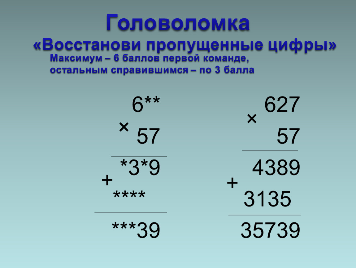 «Восстанови пропущенные цифры»