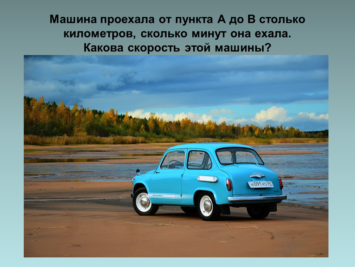 Машина проехала от пункта А до В столько километров, сколько минут она ехала. Какова скорость этой машины?