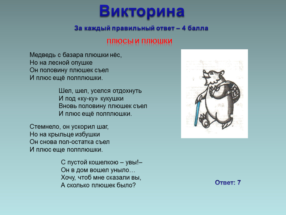 Медведь с базара плюшки нёс,