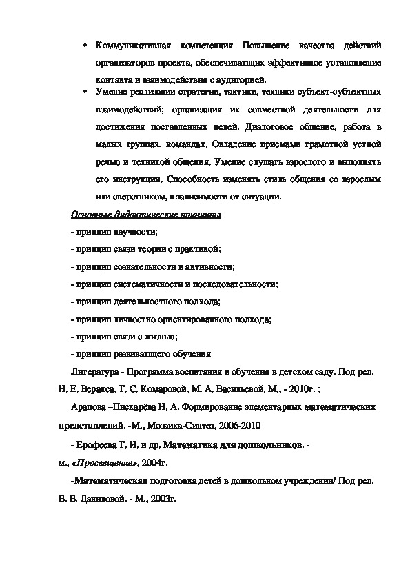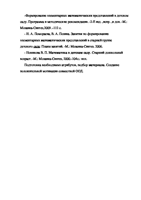 В. В. Даниловой. М., 2003г.Формирование элементарных математических представлений в детском