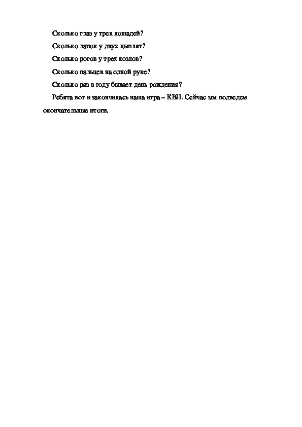 Ребята вот и закончилась наша игра – КВН. Сейчас мы подведем